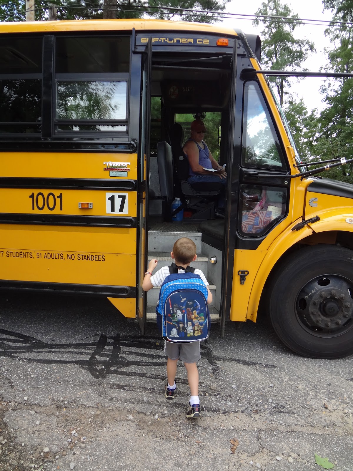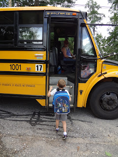 Brody's first day riding the bus to school. No hesitation at all. I had to yell after him to turn around so I could get his picture!