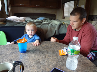 A shot of us (well JJ and Ryan anyway) eating breakfast in the new camper! Our first adventure wasn't really camping...we parked in Pat & Ev's driveway! Still, it was a good test run. Both boys got whopping colds and it was freezing at the beach, but somehow we still managed to have a fabulous time!
